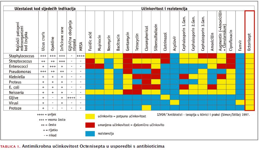 TABLICA 1. Antimikrobna učinkovitost Octenisepta u usporedbi s antibioticima |