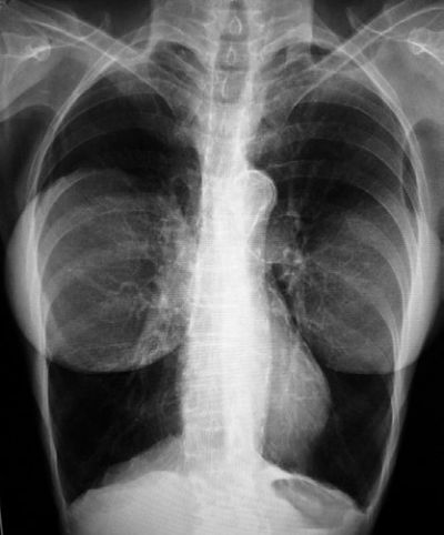 Rentgenski snimak prsnog koša s obostranim implantatima u dojkama