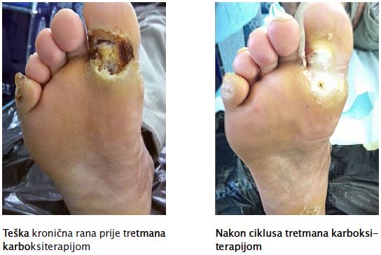 Teška kronična rana prije i nakon tretmana karboksiterapijom